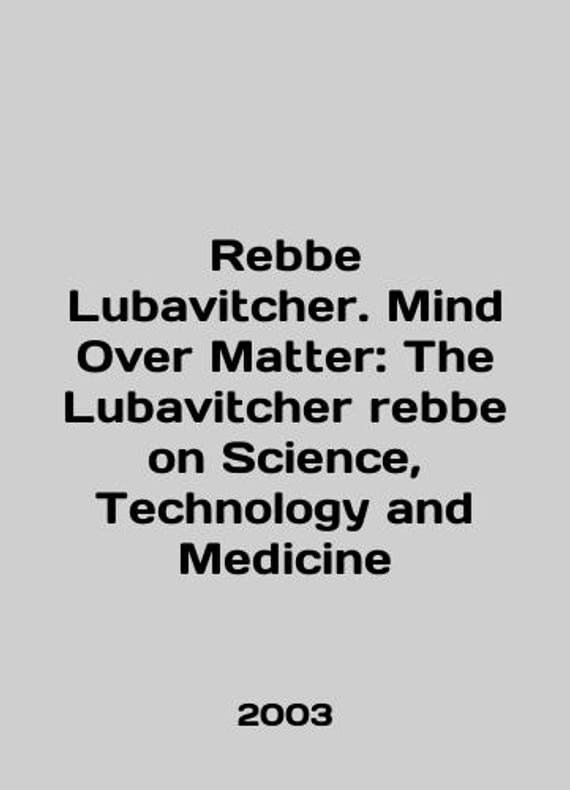 Rebbe Lubavitcher. Mind Over Matter: The Lubavitcher rebbe on Science, Technology and Medicine In English /Rebbe Lubavitcher. Mind Over Matter: The Lubavitcher rebbe on Science, Technology and Medicine The English Book Israel Shamir 2003. We have thousands of titles and often several copies of each title may be available. Please feel free to contact us for a detailed description of the copies available. SKUalbffe97af12c0c3856.