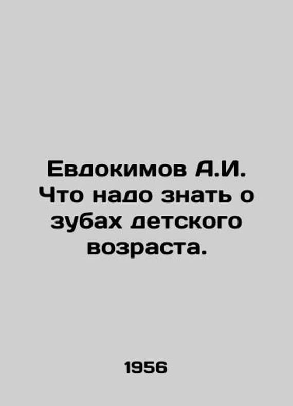 A.I. Evdokimov What you need to know about childhood teeth. In Russian /Evdokimov A.I. Chto nado znat o zubakh detskogo vozrasta. Series: Scientific and Popular Medical Literature Moscow Medgiz 1956. We have thousands of titles and often several copies of each title may be available. Please feel free to contact us for a detailed description of the copies available. SKUalbfffae878a23512b8.