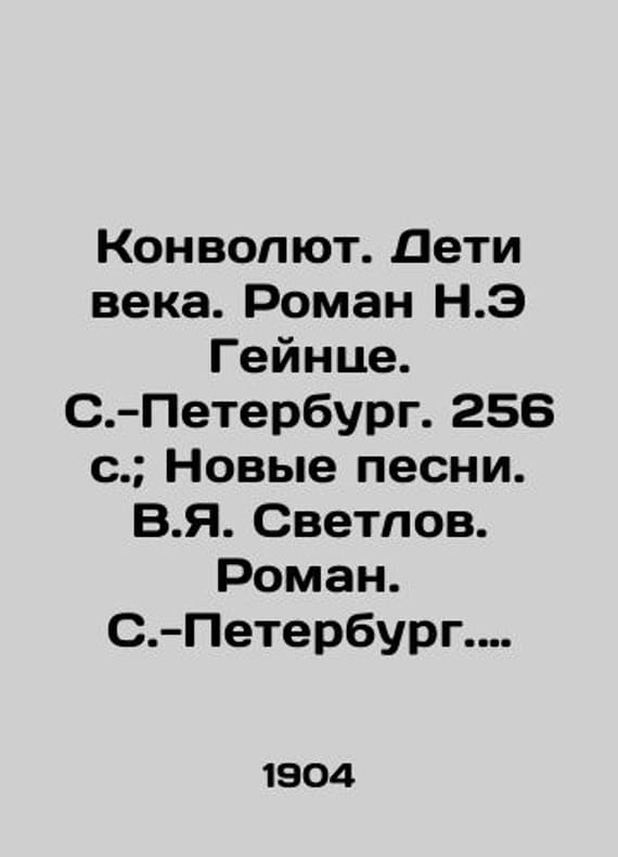 "Convolutee. Children of the Century. Novel by N.E. Heinze. St. Petersburg. 256 p.; New Songs. V.Ya. Svetlov. Novel. St. Petersburg. 1904. 256 p.; 1. Hard Way. Tale by I.I.Mitropolsky. 2. Paris. Tale by F.Dervig. St. Petersburg. Publishing House Rodina. 112 p. 20.5x14 see/Konvolyut. Deti veka. Roman N.E Geyntse. S.-Peterburg. 256 s.; Novye pesni. V.Ya. Svetlov. Roman. S.-Peterburg. 1904. 256 s.; 1.Tyazhelym putem. Povest I.I.Mitropolskogo. 2. Pari. Povest F.Derviga. S.-Peterburg. Izdatelstvo Rodina. 112 s. 20,5x14 sm. Convolutee. Children of the Century. Novel by N.E. Heinze. St. Petersburg. 256 p.; New Songs. V.Ya. Svetlov. Novel. St. Petersburg. 1904. 256 p.; 1. Hard Way. Tale by I.I.Mitropolsky. 2. Paris. Tale by F.Dervig. St. Petersburg. Publishing House Rodina. 112 p. 20.5x14 see. We have thousands of titles and often several copies of each title may be available. Please feel free to contact us for a detailed description of the copies available. SKUbd-10573c3f4d5bcf87."