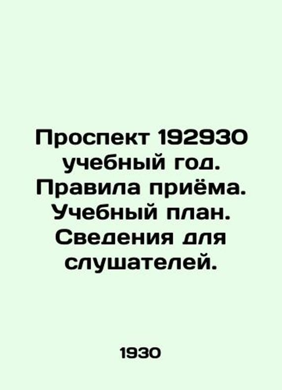 Prospectus 192930 academic year. Admission rules. Curriculum. Information for students./Prospekt 192930 uchebnyy god. Pravila priyoma. Uchebnyy plan. Svedeniya dlya slushateley. Prospectus 192930 academic year. Admission rules. Curriculum. Information for students. Moscow: 1930.-20.We have thousands of titles and often several copies of each title may be available. Please feel free to contact us for a detailed description of the copies available. SKUbd-11154fc3da14f4c0.