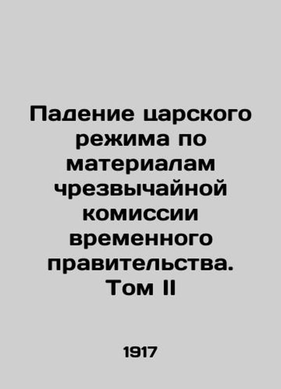 The Fall of the Tsarist Regime, based on the materials of the Provisional Governments Emergency Commission, Volume I/Padenie tsarskogo rezhima po materialam chrezvychaynoy komissii vremennogo pravitelstva. Tom II The fall of the tsarist regime on the basis of the materials of the emergency commission of the provisional government. Volume II Verbatim records of interrogations and testimonies given in 1917 at the Emergency Investigative Commission of the Provisional Government. Editing by E. Shchegolev. Interrogations by A.D. Protopova, M.M. Andronikov, A.T. Vasiliev, I.F. Manasevich-Manuilov, A.A. Makarov, K.D. Kafafafafov, M.A. Belyaev, N.D. Golitsyn, N.A. Dobrovolsky, I.G. Shcheglovitov. State Publishing House Leningrad-1925.We have thousands of titles and often several copies of each title may be available. Please feel free to contact us for a detailed description of the copies available. SKUbd-1249edec2b6f32d5.