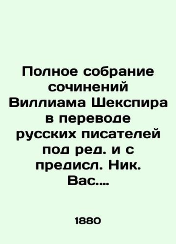 The Complete Works of William Shakespeare in Translation of Russian Writers, edited and edited by Nick. Vas. Gerbel/Polnoe sobranie sochineniy Villiama Shekspira v perevode russkikh pisateley pod red. i s predisl. Nik. Vas. Gerbelya The Complete Collection of Works by William Shakespeare in the Translation of Russian Writers, edited and edited by Nik. Vas. Gerbely.-St. Petersburg: N. V. Gerbel, 1880. 26.5x19 sm. We have thousands of titles and often several copies of each title may be available. Please feel free to contact us for a detailed description of the copies available. SKUbd-1322283cd04d2c1a.