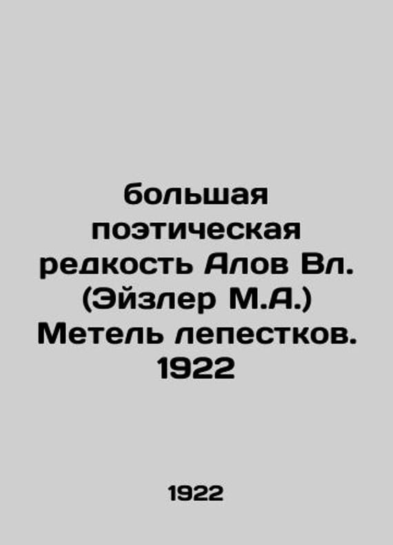 Great poetic rarity of Alov Vl. (Eisler M.A.) The blizzard of petals. 1922/bolshaya poeticheskaya redkost Alov Vl. (Eyzler M.A.) Metel lepestkov. 1922 Alov Vl. (Eisler M.A.) A blizzard of petals. Vienna. Laguna Printing House of the Order of Mexicans. 1922. We have thousands of titles and often several copies of each title may be available. Please feel free to contact us for a detailed description of the copies available. SKUbd-14234d8b415b4e45.