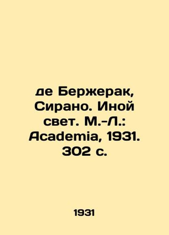 De Bergerac, Cyrano. A Different Light. M.-L.: Academia, 1931. 302 p./de Berzherak, Sirano. Inoy svet. M.-L.: Academia, 1931. 302 s. De Bergerac, Cyrano. A Different Light. M.-L.: Academia, 1931. 302 p. We have thousands of titles and often several copies of each title may be available. Please feel free to contact us for a detailed description of the copies available. SKUbd-14b60f99624f51bc.