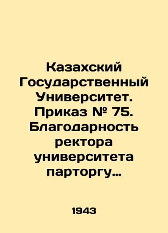 Kazakh State University. Order # 75. Gratitude from the rector of the university to Valentina Stepanovna Kornilova, Partner of the Faculty of Biology. Alma-Ata. 1943./Kazakhskiy Gosudarstvennyy Universitet. Prikaz # 75. Blagodarnost rektora universiteta partorgu biologicheskogo fakulteta Kornilovoy Valentine Stepanovne. Alma-Ata. 1943 g. Kazakh State University. Order # 75. Gratitude from the rector of the university to Valentina Stepanovna Kornilova, Partner of the Faculty of Biology. Alma-Ata. 1943. We have thousands of titles and often several copies of each title may be available. Please feel free to contact us for a detailed description of the copies available. SKUbd-1515be26ad9c94f2.