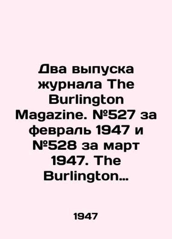 "Two issues of The Burlington Magazine. # 527 for February 1947 and # 528 for March 1947. The Burlington Magazine for connoisseurs. Vol. LXXXIX. # 527. February 1947 # 528. March 1947. London: The Burlington Magazine, Ltd., 1947.- # 527.-XXII p. (advertising), 29-52 p. (advertising); - # 528.-XXII p. (advertising), 53-82 p. (advertising);/Dva vypuska zhurnala The Burlington Magazine. #527 za fevral 1947 i #528 za mart 1947. The Burlington Magazine for connoisseurs. Vol. LXXXIX. #527. February 1947 #528. March 1947. London: The Burlington Magazine, Ltd, 1947.-#527.-XXII s. (reklama), 29-52 s.: il.;-#528.-XXII s. (reklama), 53-82 s.: il.; Two issues of The Burlington Magazine. # 527 for February 1947 and # 528 for March 1947. The Burlington Magazine for connoisseurs. Vol. LXXXIX. # 527. February 1947 # 528. March 1947. London: The Burlington Magazine, Ltd, 1947.- # 527.-XXII. We have thousands of titles and often several copies of each title may be available. Please feel free to contact us for a detailed description of the copies available. The delivery of this book might be delayed beyond the usual timeframe due to extended processing and preparation before shipment, and faster shipping options are not offered. Please inform us if you need the order by a certain date or have a deadline.SKUbd-17ff5f46ffe12abb"