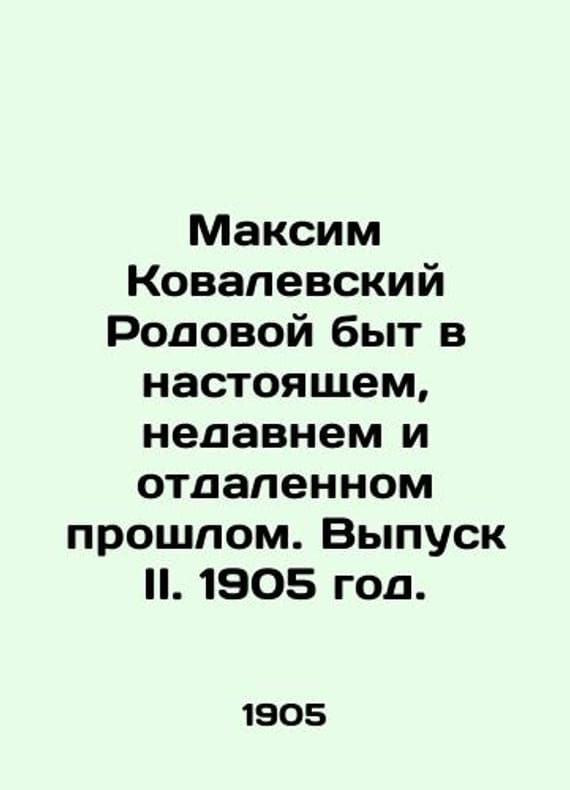 Maxim Kovalevsky Family Life in the Present, Recent, and Remote Past. Issue II. 1905./Maksim Kovalevskiy Rodovoy byt v nastoyashchem, nedavnem i otdalennom proshlom. Vypusk II. 1905 god. Brockhaus-Ephron. Experience in comparative ethnography and the history of law. Appendix to the journal Vestnik and Library of Self-Education for March 1905, St. Petersburg, 1905. Family life in the present, recent and distant past: ethnographic study by the outstanding Russian sociologist and historian M.M. Kovalevsky. We have thousands of titles and often several copies of each title may be available. Please feel free to contact us for a detailed description of the copies available. SKUbd-18849c66896b7293.