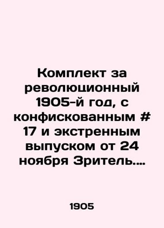 A set for the revolutionary year 1905, with confiscated # 17 and an emergency issue of the November 24 Spectator. Journal of political and social satire. # 1-24, emergency issue 1905./Komplekt za revolyutsionnyy 1905-y god, s konfiskovannym # 17 i ekstrennym vypuskom ot 24 noyabrya Zritel. Zhurnal politiko-obshchestvennoy satiry. # 1-24, ekstrennyy vypusk za 1905 g. A set for the revolutionary year 1905, with confiscated # 17 and an emergency issue of November 24 The Spectator. Journal of political and social satire. # 1-24, emergency issue of 1905 St. Petersburg: 1905. We have thousands of titles and often several copies of each title may be available. Please feel free to contact us for a detailed description of the copies available. SKUbd-1aac419b8e888c8e.