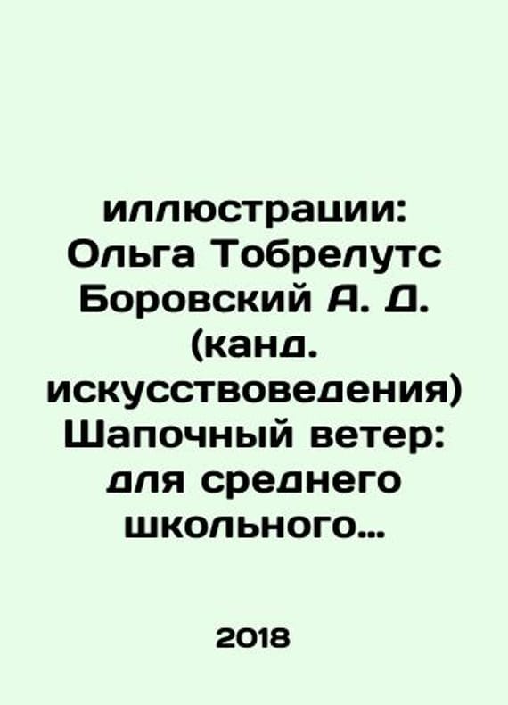 "Illustrations: Olga Tobreluts Borovskiy A. D. (Candidate of Art History) The Wind in the Head: for secondary school age Alexander Borovskiy; illustrations: Olga Tobreluts./illyustratsii: Olga Tobreluts Borovskiy A. D. (kand. iskusstvovedeniya) Shapochnyy veter: dlya srednego shkolnogo vozrasta Aleksandr Borovskiy; illyustratsii: Olga Tobreluts. Illustrations: Olga Tobreluts.-Moscow: Gorodets, 2018, i.e. 2017.-77, 3 We have thousands of titles and often several copies of each title may be available. Please feel free to contact us for a detailed description of the copies available. SKUbd-1bf5755da9de5125."
