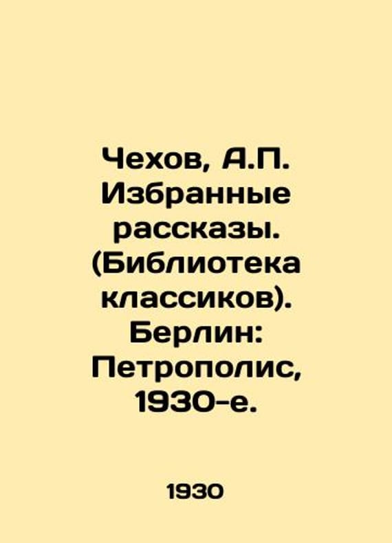Chekhov, A. Selected Stories. (Library of Classics). Berlin: Petropolis, 1930s./Chekhov, A. Izbrannye rasskazy. (Biblioteka klassikov). Berlin: Petropolis, 1930-e. Chekhov, A. Selected Stories. (Library of Classics). Berlin: Petropolis, 1930s. We have thousands of titles and often several copies of each title may be available. Please feel free to contact us for a detailed description of the copies available. SKUbd-1c27dbf09926c601.
