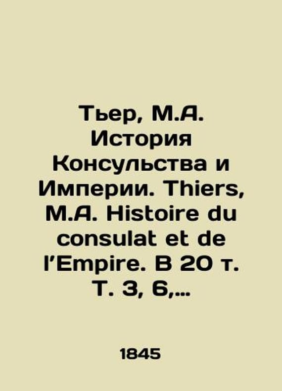 Thiers, M.A. History of the Consulate and Empire. Thiers, M.A. Histoire du consulat et de lEmpire. In 20 Vol. 3, 6, 9, 15. Paris: Paulin, 1845-1857./Ter, M.A. Istoriya Konsulstva i Imperii. Thiers, M.A. Histoire du consulat et de lEmpire. V 20 t. T. 3, 6, 9, 15. Parizh: Paulin, 1845-1857. Thiers, M.A. History of the Consulate and Empire. Thiers, M.A. Histoire du consulat et de lEmpire. In 20 Vol. 3, 6, 9, 15. Paris: Paulin, 1845-1857. We have thousands of titles and often several copies of each title may be available. Please feel free to contact us for a detailed description of the copies available. SKUbd-1c690b996d951707.