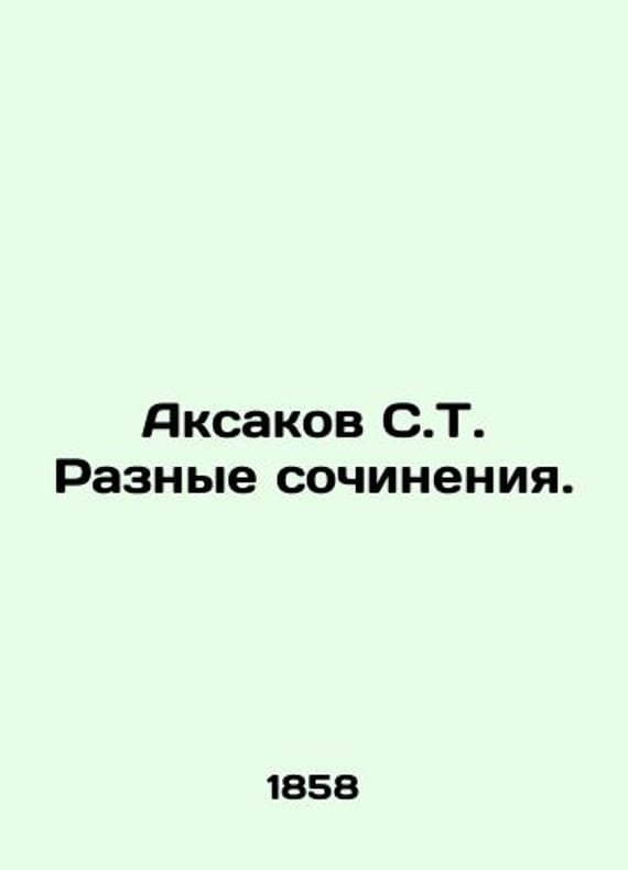 Aksakov S.T. Miscellaneous works./Aksakov S.T. Raznye sochineniya. Moscow: In L. Stepanovas printing house, at Imperial Moscow Theatres, 1858.We have thousands of titles and often several copies of each title may be available. Please feel free to contact us for a detailed description of the copies available. SKUbd-1d0b8919070dae3.