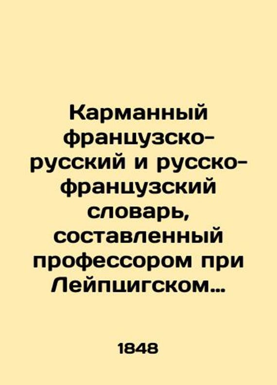 Pocket French-Russian and Russian-French dictionary compiled by Schmidt, a professor at the University of Leipzig. In two parts. Part II./Karmannyy frantsuzsko-russkiy i russko-frantsuzskiy slovar, sostavlennyy professorom pri Leyptsigskom Universitete Shmidtom. V 2-kh chastyakh. Chast II. Pocket French-Russian and Russian-French Dictionary, compiled by Schmidt, Professor at the University of Leipzig. In 2 parts. Part II. Russian-French. St. Petersburg Typography by I. Glazunov. 1848. 548We have thousands of titles and often several copies of each title may be available. Please feel free to contact us for a detailed description of the copies available. SKUbd-1d7602177d0cabc3.