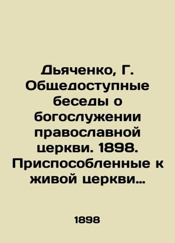 Dyachenko, G. Public Conversations on the Divine Service of the Orthodox Church. 1898. Adapted to a living church sermons, out-of-service interviews with the people and family reading of Christians. With many ecclesiastical-archaeological, ecclesiastical-historical, dogmatic, moral and other annexes. Moscow, Publishing House I.D, Sytina, 1898/Dyachenko, G. Obshchedostupnye besedy o bogosluzhenii pravoslavnoy tserkvi. 1898. Prisposoblennye k zhivoy tserkvi propovedi, vnebogosluzhebnom sobesedovaniyami s narodom i semeynomu chteniyu khristian. So mnogimi tserkovno-arkheologicheskimi, tserkovno-istoricheskimi, dogmaticheskimi, nravstvennymi i inymi prilozheniyami. Moskva, Izdatelstvo I.D, Sytina, 1898. 2, XLVI, 1142,2 s. 26x18 sm. Dyachenko, G. Public Conversations on the Divine Service of the Orthodox Church. 1898. Adapted to a living church sermons, out-of-service interviews with the people and family reading of Christians. With many ecclesiastical-archaeological, ecclesiastical-historical, dogmatic, moral and other annexes. Moscow, Publishing House I.D, Sytina, 1898. We have thousands of titles and often several copies of each title may be available. Please feel free to contact us for a detailed description of the copies available. SKUbd-1edbdb74d9c4495d.