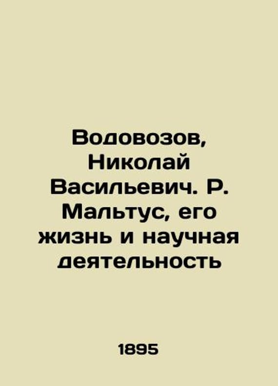 Vodovozov, Nikolai Vasilyevich. R. Malthus, his life and scientific activity/Vodovozov, Nikolay Vasilevich. R. Maltus, ego zhizn i nauchnaya deyatelnost Vodovozov, Nikolai Vasilyevich. R. Malthus, his life and scientific activity: biography of N. V. Vodovozov: with a portrait of Malthus engraved in Leipzig by Gedan.We have thousands of titles and often several copies of each title may be available. Please feel free to contact us for a detailed description of the copies available. SKUbd-1f309802b0560b5c.
