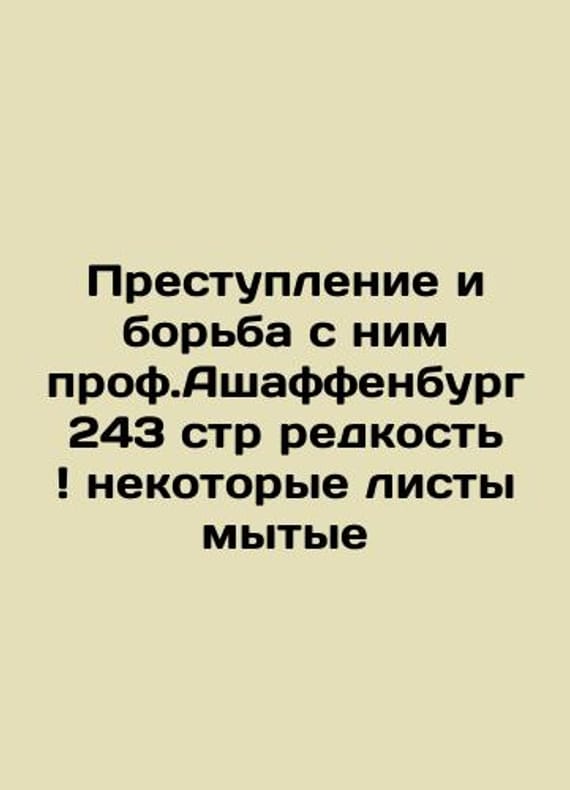 Crime and the fight against it Prof. Aschaffenburg 243 pp. rarity some sheets washed/Prestuplenie i borba s nim prof.Ashaffenburg 243 str redkost nekotorye listy mytye Crime and the fight against it Prof. Aschaffenburg 243 pp. rarity some sheets washed.We have thousands of titles and often several copies of each title may be available. Please feel free to contact us for a detailed description of the copies available. SKUbd-2024f531d18f9003.