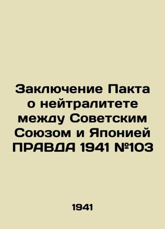 Conclusion of the Neutrality Pact between the Soviet Union and Japan PRAVDA 1941 # 103/Zaklyuchenie Pakta o neytralitete mezhdu Sovetskim Soyuzom i Yaponiey PRAVDA 1941 #103 PRAVDA. Newspaper. 1941 # 103, April 14, 1941. M. Organ of the Central Committee and MK, C.S.U. (b), type. Stalins Pravda, 6 p. Gazetny.We have thousands of titles and often several copies of each title may be available. Please feel free to contact us for a detailed description of the copies available. SKUbd-204da35b85dd48fa.