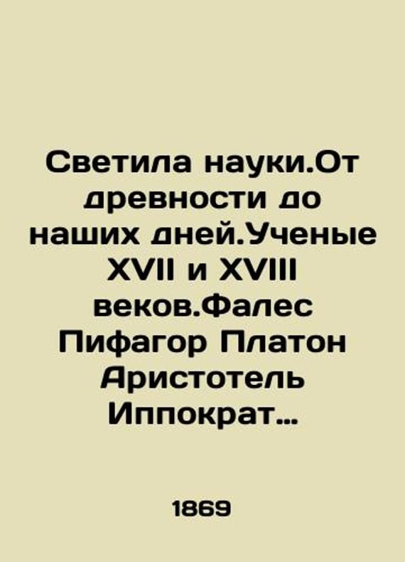The Luminaries of Science. From Antiquity to the Present Day. Seventeenth and Eighteenth Century Scientists. Thales Pythagoras Plato Aristotle Hippocrates Theofrast Archimedes Euclid Hipparchus/Svetila nauki.Ot drevnosti do nashikh dney.Uchenye XVII i XVIII vekov.Fales Pifagor Platon Aristotel Ippokrat Feofrast Arkhimed Evklid Ipparkh. M.O. Volf. 1869. 426 2 s. 25 l. il. The Luminaries of Science. From Antiquity to the Present Day. Seventeenth and Eighteenth Century Scientists. Thales Pythagoras Plato Aristotle Hippocrates Theofrast Archimedes Euclid Hipparchus. We have thousands of titles and often several copies of each title may be available. Please feel free to contact us for a detailed description of the copies available. SKUbd-20c2b3a7d5f709a6.