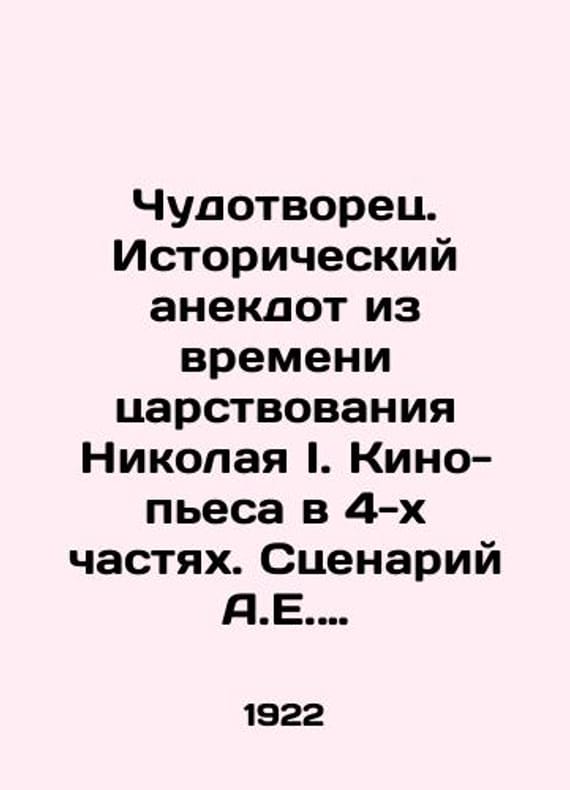 "The Miracle Worker. A historical anecdote from the reign of Nicholas I. A film-play in 4 parts. Screenplay by A.E. Zarin. Directed by the artist of the State Academy of Theatres, A. Panteleev, with the participation of the artists of the 1st collective of film artists. 1922, -6 p.;/Chudotvorets. Istoricheskiy anekdot iz vremeni tsarstvovaniya Nikolaya I. Kino-pesa v 4-kh chastyakh. Stsenariy A.E. Zarina.Postanovka artista gosudarstv. akadem. teatrov A. Panteleeva pri uchastii artistov 1-go kollektiva kino-artistov. 1922,-6 s.; The Miracle Worker. A historical anecdote from the reign of Nicholas I. A film-play in 4 parts. Screenplay by A.E. Zarin. Directed by the artist of the State Academy of Theatres, A. Panteleev, with the participation of the artists of the 1st collective of film artists. 1922, -6 p.;. We have thousands of titles and often several copies of each title may be available. Please feel free to contact us for a detailed description of the copies available. SKUbd-2130270e0aa177c1."