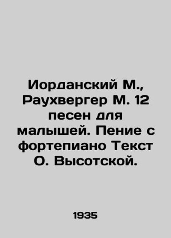 Jordanian M., Rauhwerger M. 12 songs for kids. Singing from the piano Text by O. Vysotskaya./Iordanskiy M., Raukhverger M. 12 pesen dlya malyshey. Penie s fortepiano Tekst O. Vysotskoy. Jordanian M., Raukhverger M. 12 songs for kids. Singing from the piano. Text by O. Vysotskaya. Moscow: State Museum, 1935. 26 p.,. SKUbd-21314e46bb2f1f11.We have thousands of titles and often several copies of each title may be available. Please feel free to contact us for a detailed description of the copies available. The delivery of this book might be delayed beyond the usual time due to extended processing and preparation before shipment, and faster shipping options are not offered. Please inform us if you need the order by a certain date or have a deadline.SKUbd-21314e46bb2f1f11