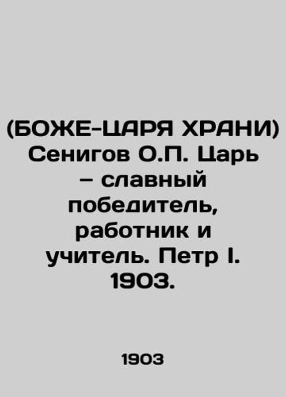 (God is the King of the Temple) Senigov O. Tsar is a glorious winner, worker and teacher. Peter I. 1903./(BOZhE-TsARYa KhRANI) Senigov O. Tsar slavnyy pobeditel, rabotnik i uchitel. Petr I. 1903. Senigov O. Tsar, glorious winner, worker and teacher. St. Petersburg, 1903. 64We have thousands of titles and often several copies of each title may be available. Please feel free to contact us for a detailed description of the copies available. SKUbd-217cd005a0e0b07a.