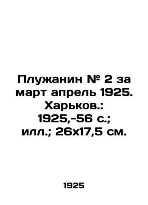 "Pluzhanin # 2 for March April 1925. Kharkiv.: 1925, -56 p.; il.; 26x17.5 sm./Pluzhanin # 2 za mart aprel 1925. Kharkov.: 1925,-56 s.; ill.; 26x17,5 sm. Pluzhanin # 2 for March April 1925. Kharkiv.: 1925, -56.We have thousands of titles and often several copies of each title may be available. Please feel free to contact us for a detailed description of the copies available. SKUbd-2193032a0c87c47d."