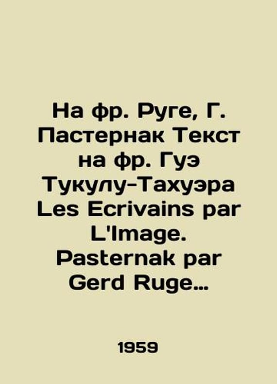 "In Rouge, G. Pasternak Text in Gue Tucoulou-Tachoueres, Les Ecrivains par LImage. Pasternak par Gerd Ruge texte francais de Gue Tucoulou-Tachoueres. Munich: Kindlers klassische bildbiography, 1959.-143 p., p.;/Na fr. Ruge, G. Pasternak Tekst na fr. Gue Tukulu-Takhuera Les Ecrivains par LImage. Pasternak par Gerd Ruge texte francais de Gue Tucoulou-Tachoueres. Munchen: Kindlers klassische bildbiographen, 1959.-143 c., il.; In Rouge, G. Pasternak Text in Gue Tucoulou-Tachoueres, Les Ecrivains par LImage. Pasternak par Gerd Ruge texte francais de Gue Tucoulou-Tachoueres. Munich: Kindlers klassische bildbiography, 1959.-143 p., p.;. We have thousands of titles and often several copies of each title may be available. Please feel free to contact us for a detailed description of the copies available. SKUbd-21aad9de67320099."