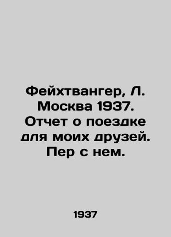 Feuchtwanger, L. Moscow 1937. Report on the trip for my friends/Feykhtvanger, L. Moskva 1937. Otchet o poezdke dlya moikh druzey. Per s nem. Feuchtwanger, L. Moscow 1937. Report on the trip for my friends. Per him. Moscow: Art Literature, 1937. 93, 2c.We have thousands of titles and often several copies of each title may be available. Please feel free to contact us for a detailed description of the copies available. SKUbd-227485d0f9bdb056.