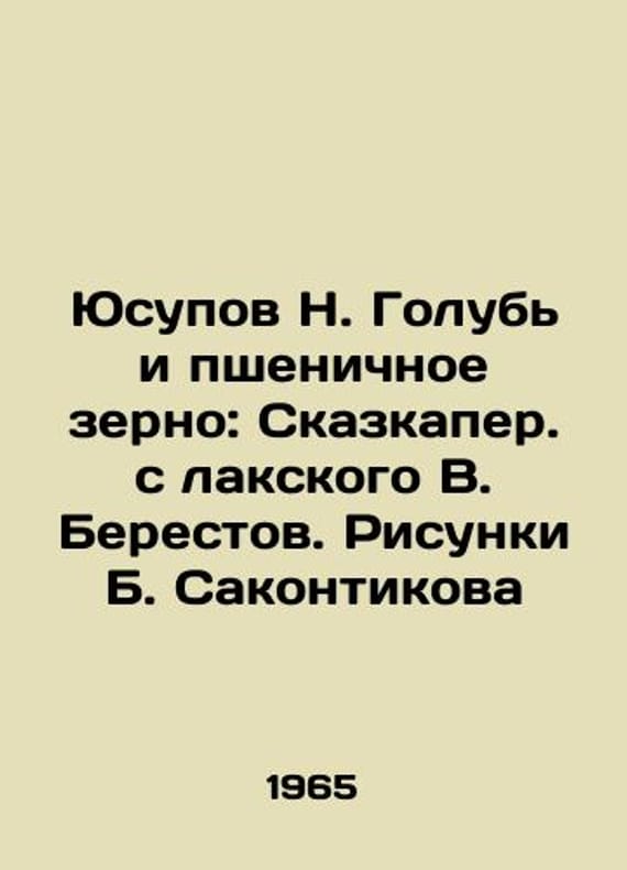Yusupov N. Dove and wheat grain: A fairy tale from Lakskoye V. Berestov. Sketches by B. Sakontikov/Yusupov N. Golub i pshenichnoe zerno: Skazkaper. s lakskogo V. Berestov. Risunki B. Sakontikova B. Sakontikov and Khud Yusupov N. Dove and Wheat Grain: A Tale from Lakskoye V. Berestov. Sketches by B. Sakontikov and M.: Childrens Literature, 1965. 19.8 - 14.5 sm. We have thousands of titles and often several copies of each title may be available. Please feel free to contact us for a detailed description of the copies available. SKUbd-227dcdfe5c854434.
