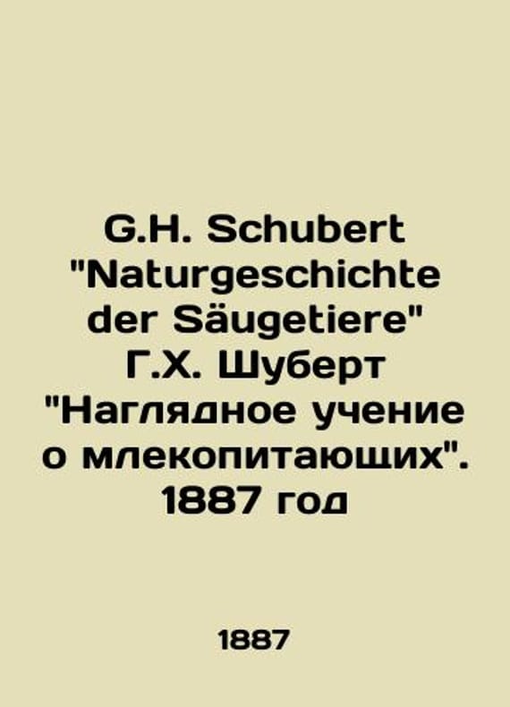 G.H. Schubert Naturgeschichte der Seugetiere H.H. Schubert Visual Mammal Teaching. 1887/G.H. Schubert Naturgeschichte der Saeugetiere G.Kh. Shubert Naglyadnoe uchenie o mlekopitayushchikh. 1887 god Verlag von J.F. Schreiber. Mit 159 kolorierten Abbildungen auf 50 Tafeln und erleuterndem text nebst 15 Textillustrationen. Anschauungs-Unterricht fur die Jugend in Schulen und Familien. Zehnte Auflage. Mit einem Vorwort von Professor Dr. G.H. v. Schubert Publishing J.F. Schreiber. With 159 animal drawings on 50 tables and explanatory text together with 15 text illustrations.We have thousands of titles and often several copies of each title may be available. Please feel free to contact us for a detailed description of the copies available. The delivery of this book might be delayed beyond the usual timeframe due to extended processing and preparation before shipment, and faster shipping options are not offered. Please inform us if you need the order by a certain date or have a deadline.SKUbd-2290e69d6a9d077f