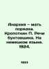 Anarchy is the mother of order. Kropotkin Speeches of a rebel. In German. 1924./Anarkhiya mat poryadka. Kropotkin Rechi buntovshchika. Na nemetskom yazyke. 1924. Anarchy is the mother of order. Kropotkin Speeches of a rebel. In German. Translation from French approved by the author, with his approved footnotes and explanations, prepared as a token of appreciation from Pierre Ramu. Second full German edition. 1924. Publishing House Knowledge and Liberation. Vienna / Klosterneuburg-Mannheim. XVI, 240 pp.We have thousands of titles and often several copies of each title may be available. Please feel free to contact us for a detailed description of the copies available. SKUbd-23660f1c303d023.