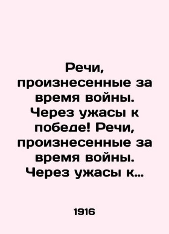 "Speeches made during the war. Through horrors to victory Speeches made during the war. Through horrors to victory D. Lloyd-George; Translated from English by S. I. Cederbaum-Petrograd: Book by M.V. Popov, 1916/Rechi, proiznesennye za vremya voyny. Cherez uzhasy k pobede Rechi, proiznesennye za vremya voyny. Cherez uzhasy k pobede D. Lloyd-Dzhordzh; Per. s angl. pod red. S.I. Tsederbaum.-Petrograd: Kn-vo b. M.V. Popova, tsenz. 1916. 212, 4 s.; 23,5x17 sm. Speeches made during the war. Through horrors to victory Speeches made during the war. Through horrors to victory D. Lloyd-George; Translated from English under the editorship of S. I. Cederbaum-Petrograd: Book by M.V. Popov, volume 1916.We have thousands of titles and often several copies of each title may be available. Please feel free to contact us for a detailed description of the copies available. SKUbd-24209ea3a0076954."
