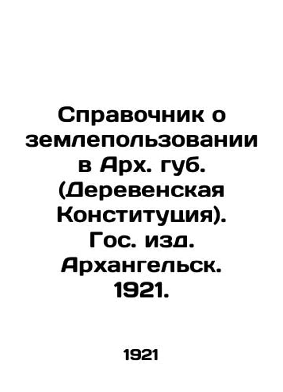 Reference book on land use in the Arch-Guba (Village Constitution). State Publishing House of Arkhangelsk. 1921./Spravochnik o zemlepolzovanii v Arkh. gub. (Derevenskaya Konstitutsiya). Gos. izd. Arkhangelsk. 1921. Reference book on land use in the Archipelago (Village Constitution). State Publishing House of Arkhangelsk. 1921.-43.We have thousands of titles and often several copies of each title may be available. Please feel free to contact us for a detailed description of the copies available. SKUbd-242c0ed0ba02c253.