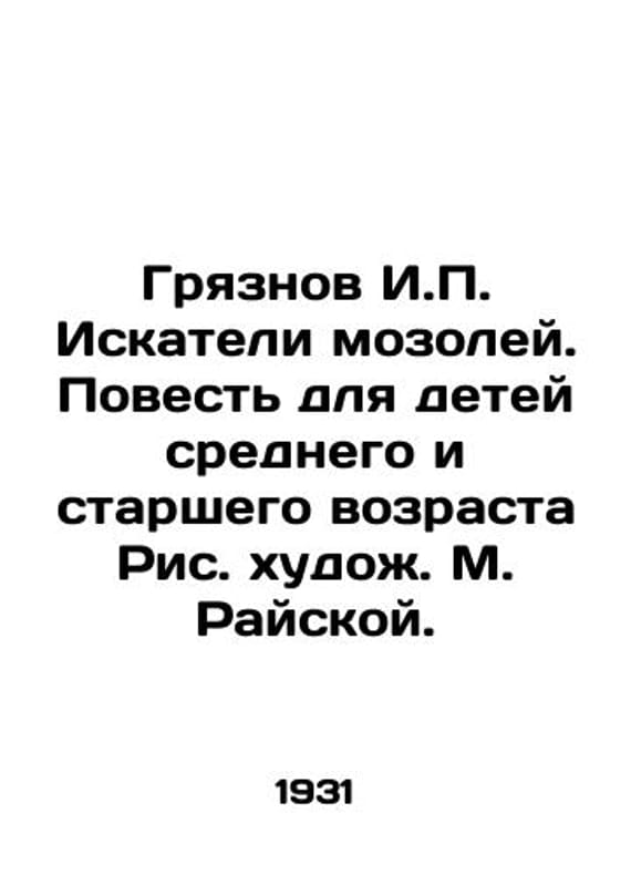 "Dirty I. Sleepwalkers: A Tale for Middle and Older Children, by the artist M. Paradise/Gryaznov I. Iskateli mozoley. Povest dlya detey srednego i starshego vozrasta Ris. khudozh. M. Rayskoy. Dirty I. Seekers of calluses. A Tale for Middle and Older Children by the Painter M. Raiskoy. M.; L.: Ogiz; The Young Guard, 1931. 220, 4 We have thousands of titles and often several copies of each title may be available. Please feel free to contact us for a detailed description of the copies available. SKUbd-24a169e458a01fb6."