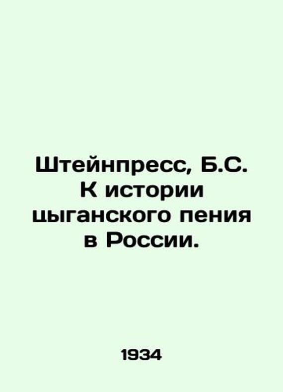 Steinpress B. On the history of Roma singing in Russia. In Russian /Shteynpress B. K istorii tsyganskogo peniya v Rossii. Moscow: State Music Publishing House 1934. 64 p. We have thousands of titles and often several copies of each title may be available. Please feel free to contact us for a detailed description of the copies available. SKUalbf94151f67d3f7467.