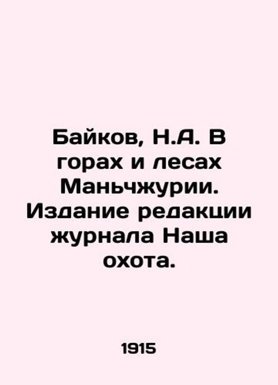Baikov, N.A. In the mountains and forests of Manchuria/Baykov, N.A. V gorakh i lesakh Manchzhurii. Izdanie redaktsii zhurnala Nasha okhota. Bajkov, N.A. In the mountains and forests of Manchuria. Pg.: Type D. Weisbruth, 1915. We have thousands of titles and often several copies of each title may be available. Please feel free to contact us for a detailed description of the copies available. SKUbd-26e95c157d62a171.