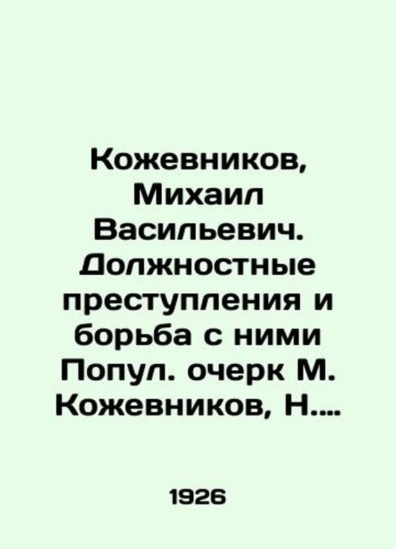 Kozhevnikov, Mikhail Vasilyevich. Duty Crimes and the Fight Against them. Sketch by M. Kozhevnikov, N. Lagovier/Kozhevnikov, Mikhail Vasilevich. Dolzhnostnye prestupleniya i borba s nimi Popul. ocherk M. Kozhevnikov, N. Lagovier. Kozhevnikov, Mikhail Vasilyevich. Official Crimes and the Fight Against them Popularized Essay by M. Kozhevnikov, N. Lagovier.We have thousands of titles and often several copies of each title may be available. Please feel free to contact us for a detailed description of the copies available. SKUbd-273c5a98307a05c4.