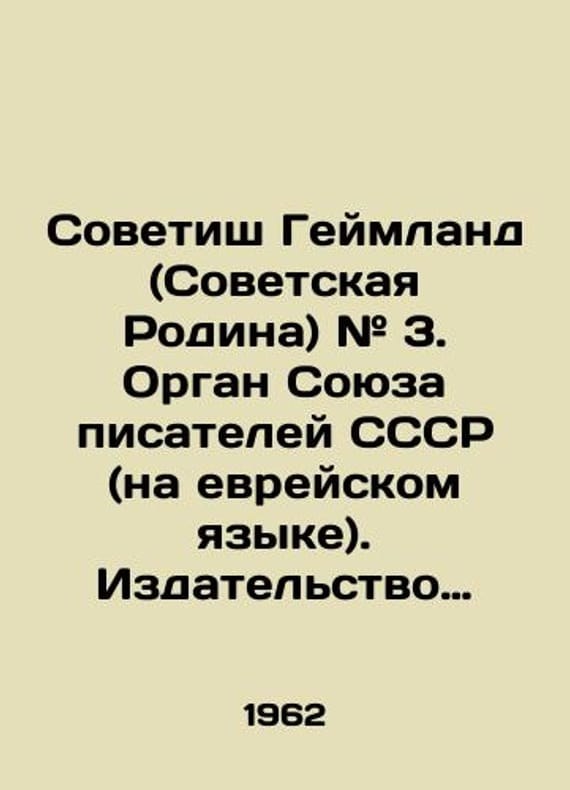 Sovetish Heimland (Soviet Homeland) # 3. Organ of the Union of Writers of the USSR (in Hebrew)/Sovetish Geymland (Sovetskaya Rodina) # 3. Organ Soyuza pisateley SSSR (na evreyskom yazyke). Izdatelstvo Sovetskikh pisateley. Soviet Geimland (Soviet Homeland) # 3. Organ of the Union of Writers of the USSR (in Hebrew). Publishing House of Soviet Writers. Moscow: 1962. 128 p.We have thousands of titles and often several copies of each title may be available. Please feel free to contact us for a detailed description of the copies available. SKUbd-275d7c9e07bb859.