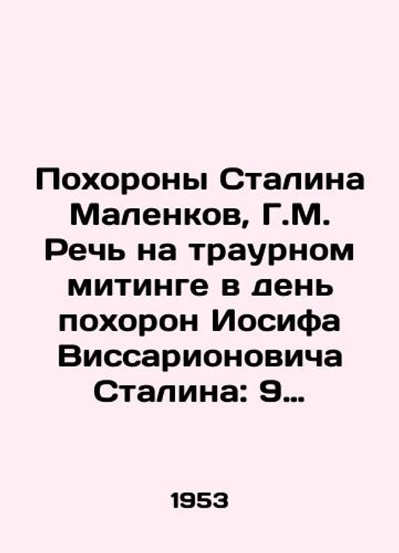 "The funeral of Stalin Malenkov, G.M. Speech at the funeral rally on the day of the funeral of Joseph Vissarionovich Stalin: March 9, 1953, in Red Square, Joseph Vissarionovich Stalinde erlau konondu mourn the rally of the people of the Bashkir publishing house, 1953./Pokhorony Stalina Malenkov, G.M. Rech na traurnom mitinge v den pokhoron Iosifa Vissarionovicha Stalina: 9 marta 1953 goda na Krasnoy ploshchadi Iosif Vissarionovich Stalinde Ufa: Bashkirskoe knizhnoe izdatelstvo, 1953. The funeral of Stalin Malenkov, G.M. Speech at the funeral rally on the day of the funeral of Joseph Vissarionovich Stalin: March 9, 1953, in Red Square, Joseph Vissarionovich Stalinde erlau konondtsy mourn the rally of the people of Kyzyl Maymanov telmar: 1953 yyldyn March 9. Ufa: Bashkir Book Publishing House, 1953.-16 c.; 20x13.5 sm. We have thousands of titles and often several copies of each title may be available. Please feel free to contact us for a detailed description of the copies available. SKUbd-27896e5f0ba71636."