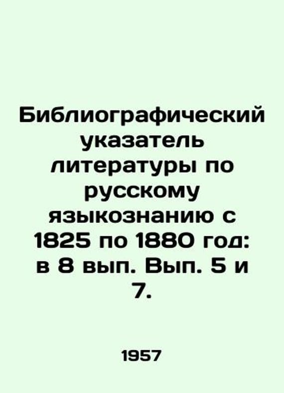 "Bibliographic index of literature on Russian linguistics from 1825 to 1880: in 8 issues, Volumes 5 and 7./Bibliograficheskiy ukazatel literatury po russkomu yazykoznaniyu s 1825 po 1880 god: v 8 vyp. Vyp. 5 i 7. A bibliographic index of literature on Russian linguistics from 1825 to 1880: in 8 volumes, Volume 5 and 7. Moscow: Publishing House of Acad. sciences of the USSR, 1957-1958. Volume 5: Monuments of the Russian language. Volume 1957. Volume 680 p.; Volume 7: Ukrainian and Belarusian: Comparative linguistics. Historiography of Russian linguistics. Volume 1958. Volume 554 p.;. We have thousands of titles and often several copies of each title may be available. Please feel free to contact us for a detailed description of the copies available. SKUbd-283e2af5fd5506e3."