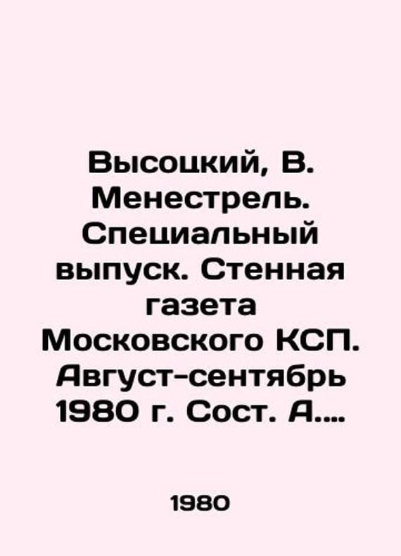 "Vysotsky, V. Menestrel. Special issue. The wall newspaper of the Moscow KS August-September 1980. Sost. A. Krylov. Moscow, 1980. No. 66, 9, 4, 6 p.; 28.5x21 sm./Vysotskiy, V. Menestrel. Spetsialnyy vypusk. Stennaya gazeta Moskovskogo KS Avgust-sentyabr 1980 g. Sost. A. Krylov. M., 1980. 66, 9, 4, 6 s.; 28,5x21 sm. Vysotsky, V. Menestrel. Special Issue. Wall Newspaper of the Moscow KS August-September 1980. A. Krylov. Moscow, 1980. 66, 9, 4, 6 p.; 28.5x21 sm. We have thousands of titles and often several copies of each title may be available. Please feel free to contact us for a detailed description of the copies available. SKUbd-28c567b804efbee7."