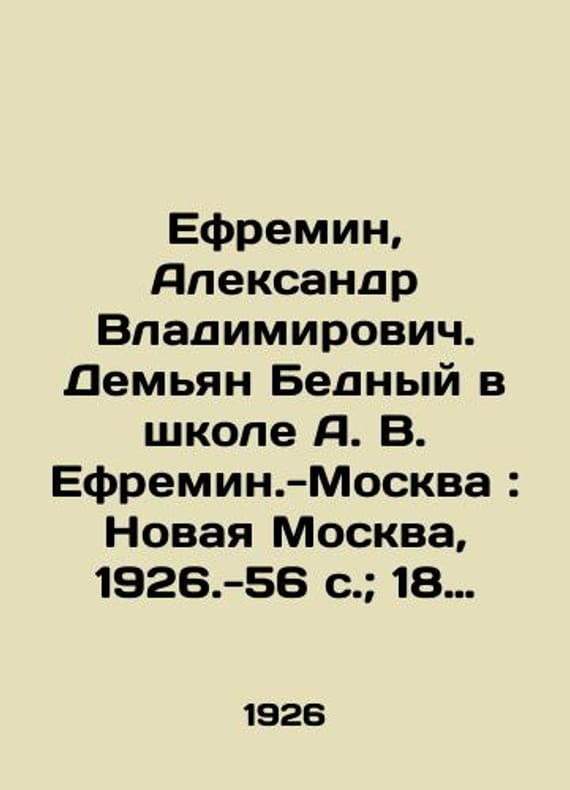 "Efremin, Alexander Vladimirovich. Demian Bedny in the school of A. V. Efremin-Moscow: New Moscow, 1926.-56 p.; 18 sm./Efremin, Aleksandr Vladimirovich. Demyan Bednyy v shkole A. V. Efremin.-Moskva: Novaya Moskva, 1926.-56 s.; 18 sm. Efremin, Alexander Vladimirovich. Demian Bedny in the school of A. V. Efremin-Moscow: New Moscow, 1926.-56 p.; 18 sm. We have thousands of titles and often several copies of each title may be available. Please feel free to contact us for a detailed description of the copies available. SKUbd-28da84e347830064."