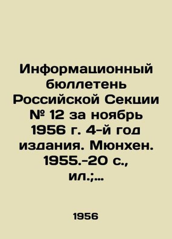 "Information bulletin of the Russian Section # 12 for November 1956, 4th year of publication. Munich. 1955.-20 p., il.; 30x21 sm./Informatsionnyy byulleten Rossiyskoy Sektsii # 12 za noyabr 1956 g. 4-y god izdaniya. Myunkhen. 1955.-20 s., il.; 30x21 sm. Information bulletin of the Russian Section # 12 for November 1956, 4th year of publication. Munich. 1955.-20 p.We have thousands of titles and often several copies of each title may be available. Please feel free to contact us for a detailed description of the copies available. SKUbd-28fea34fcbf44a6."