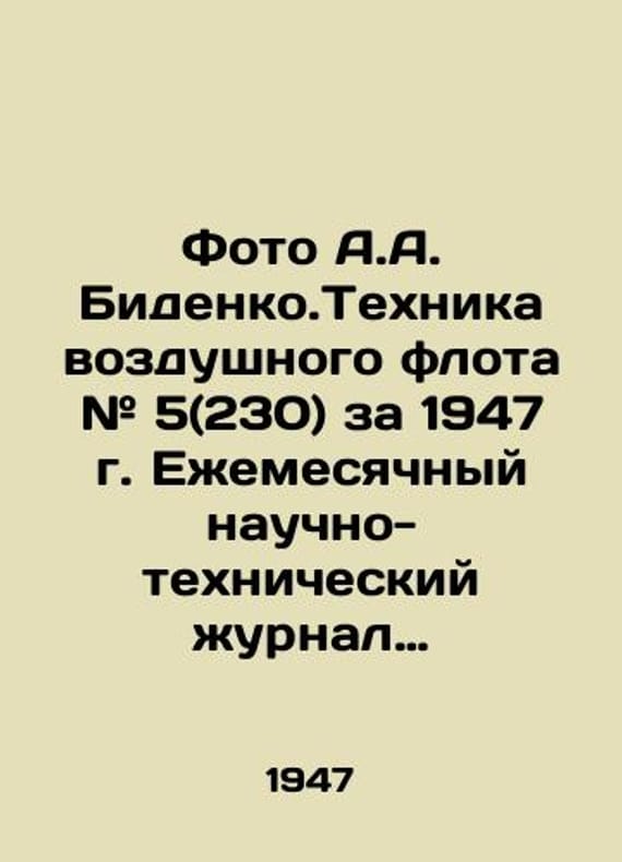 "Photo A.A. Bidenko.Technique of the Air Fleet # 5 (230) for 1947, Monthly Scientific and Technical Journal of the Ministry of Aviation Industry of the USSR Union./Foto A.A. Bidenko.Tekhnika vozdushnogo flota # 5(230) za 1947 g. Ezhemesyachnyy nauchno-tekhnicheskiy zhurnal ministerstva aviatsionnoy promyshlennosti soyuza SSSR. Photo of A.A. Bidenko.Technique of the Air Fleet # 5 (230) for 1947. Monthly scientific and technical journal of the Ministry of Aviation Industry of the Union of the USSR. Moscow: 1947.-40 p., il.; 28x22 sm.We have thousands of titles and often several copies of each title may be available. Please feel free to contact us for a detailed description of the copies available. SKUbd-29177904021fa4eb."