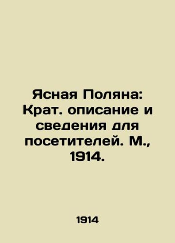 "Yasnaya Polyana: Brief description and information for visitors. Moscow, 1914./Yasnaya Polyana: Krat. opisanie i svedeniya dlya posetiteley. M., 1914. Ed. S. L. Tolstoy, I. Biryukov and A. E. Gruzinskrnr; design by L. I. Galbershtadt. Moscow: Tolstoy v Moscow, 1914. We have thousands of titles and often several copies of each title may be available. Please feel free to contact us for a detailed description of the copies available. SKUbd-29b57da6cba6894e."