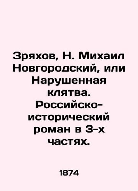 Zryakhov, N. Mikhail Novgorodsky, or Broken Oath. A Russian-historical novel in 3 Parts, pp. 1-3, 5th ed./Zryakhov, N. Mikhail Novgorodskiy, ili Narushennaya klyatva. Rossiysko-istoricheskiy roman v 3-kh chastyakh. Ch. 1-3. 5-e izd. Zryakhov, N. Mikhail Novgorodsky, or Broken Oath. Russian-historical novel in three parts. Parts 1-3. 5th ed. Moscow: Type, T. Rice, 1874.We have thousands of titles and often several copies of each title may be available. Please feel free to contact us for a detailed description of the copies available. SKUbd-2b0a4b20cb4e83ac.