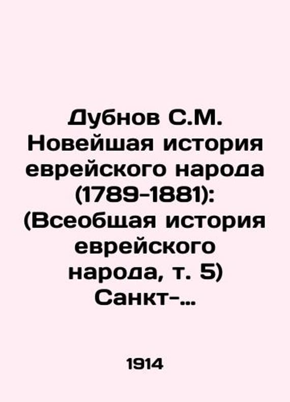 Dubnov S.M. The Modern History of the Jewish People (1789-1881): (General History of the Jewish People, vol. 5) St. Petersburg: Type NORTH, 1914/Dubnov S.M. Noveyshaya istoriya evreyskogo naroda (1789-1881): (Vseobshchaya istoriya evreyskogo naroda, t. 5) Sankt-Peterburg: Tip. «SEVER, 1914 Dubnov S.M. The Modern History of the Jewish People (1789-1881): (General History of the Jewish People, vol. 5) St. Petersburg: Type NORTH, 1914. We have thousands of titles and often several copies of each title may be available. Please feel free to contact us for a detailed description of the copies available. SKUbd-2b2ab6995541340b.