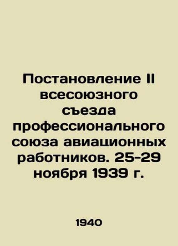 Resolution of the Second All-Union Congress of the Trade Union of Aviation Workers. November 25-29, 1939/Postanovlenie II vsesoyuznogo sezda professionalnogo soyuza aviatsionnykh rabotnikov. 25-29 noyabrya 1939 g. Resolution of the Second All-Union Congress of the Trade Union of Aviation Workers. November 25-29, 1939, Moscow: 1940-32 p.: 14x11 sm.We have thousands of titles and often several copies of each title may be available. Please feel free to contact us for a detailed description of the copies available. SKUbd-2b76886522bd1eb2.