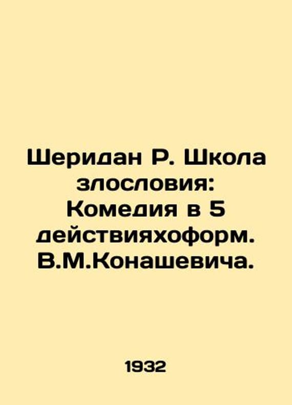 Sheridan R. School of Vilification: Comedy in 5 Acts. V.M.Konashevich./Sheridan R. Shkola zlosloviya: Komediya v 5 deystviyakhoform. V.M.Konashevicha. M.-L.: Academia, 1932. We have thousands of titles and often several copies of each title may be available. Please feel free to contact us for a detailed description of the copies available. SKUbd-2c22fea172cd1ffb.