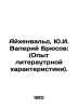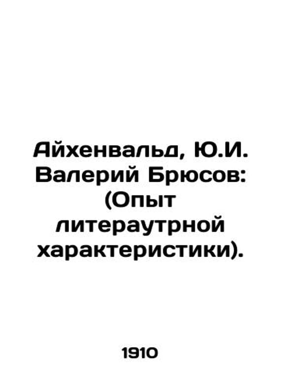 Eichenwald, Y.I. Valery Bryusov: (Experience of literary characterization)./Aykhenvald, Yu.I. Valeriy Bryusov: (Opyt literautrnoy kharakteristiki). Eichenwald, Y.I. Valery Bryusov: (Experience of literary characterization). Moscow: Dawn, 1910. 32 p. We have thousands of titles and often several copies of each title may be available. Please feel free to contact us for a detailed description of the copies available. SKUbd-2ceed6d6ab99a86.
